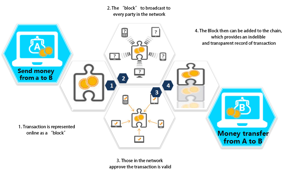 2. Transaction is represented online as a "block"